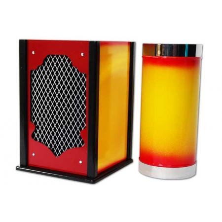 Durable highest quality Square Circle stage illusion designed for the professional. The 'black art design' of this Square Circle allows for a highly deceptive illusion. Safely packed for shipping anywhere in the world. The square box with mesh window stands 11.75 in. (29.8 cm) high. The circle stands 11 in. (27.9 cm) high and has an opening of 5 in. (12.7 cm). Here is a device for vanishing or pro